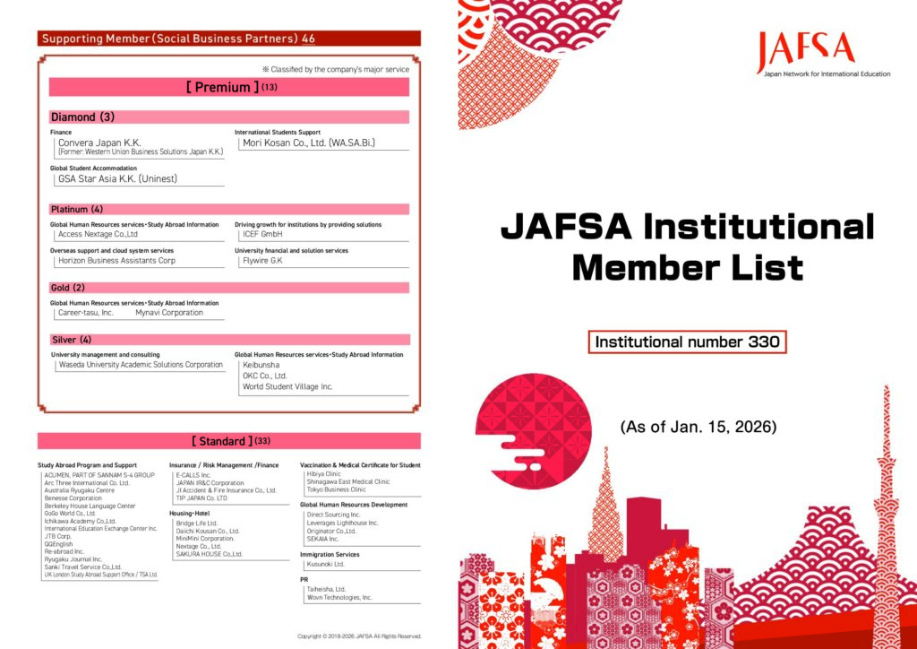 JAFSA Institutional Member List (as of Jan. 15th, 2026) (PDF)